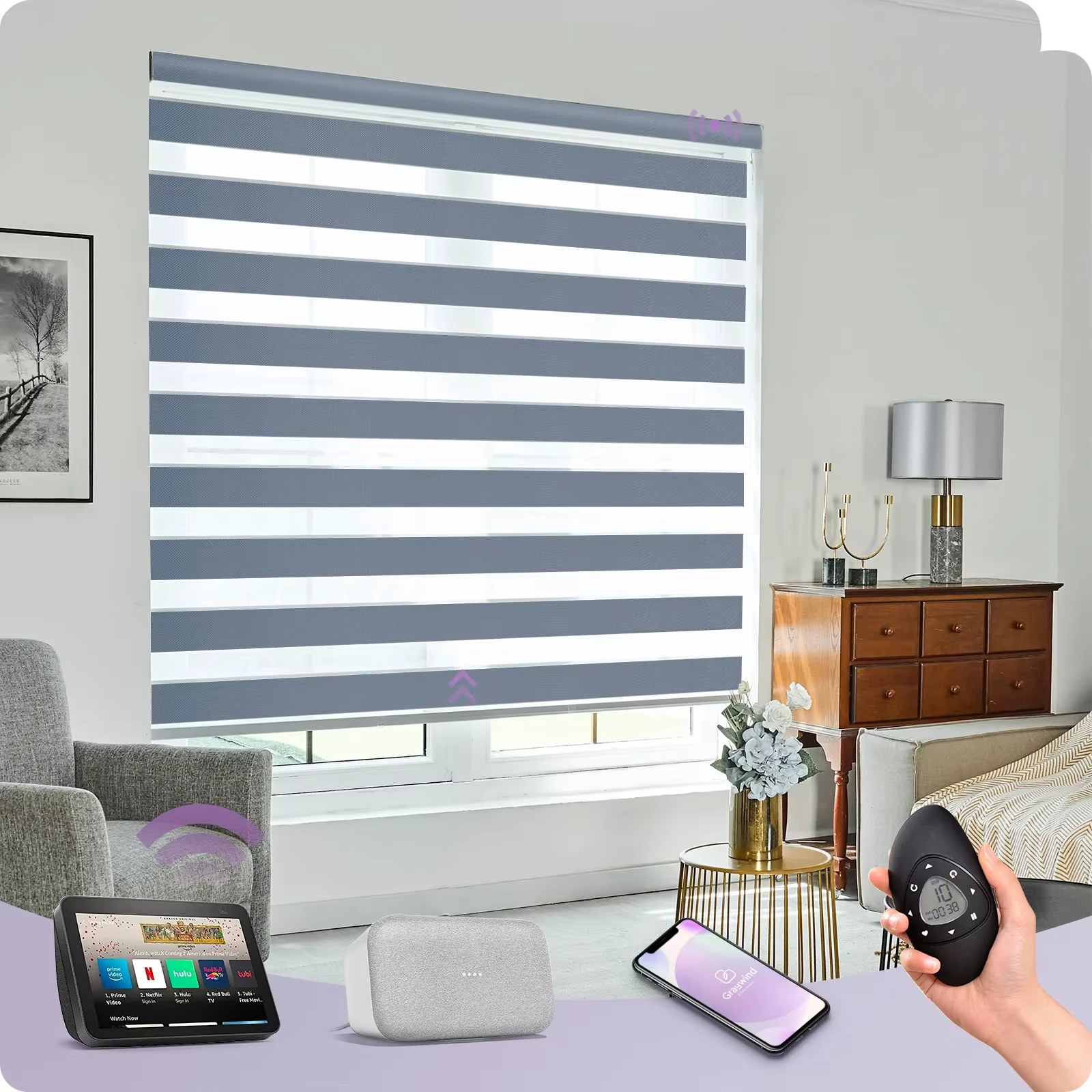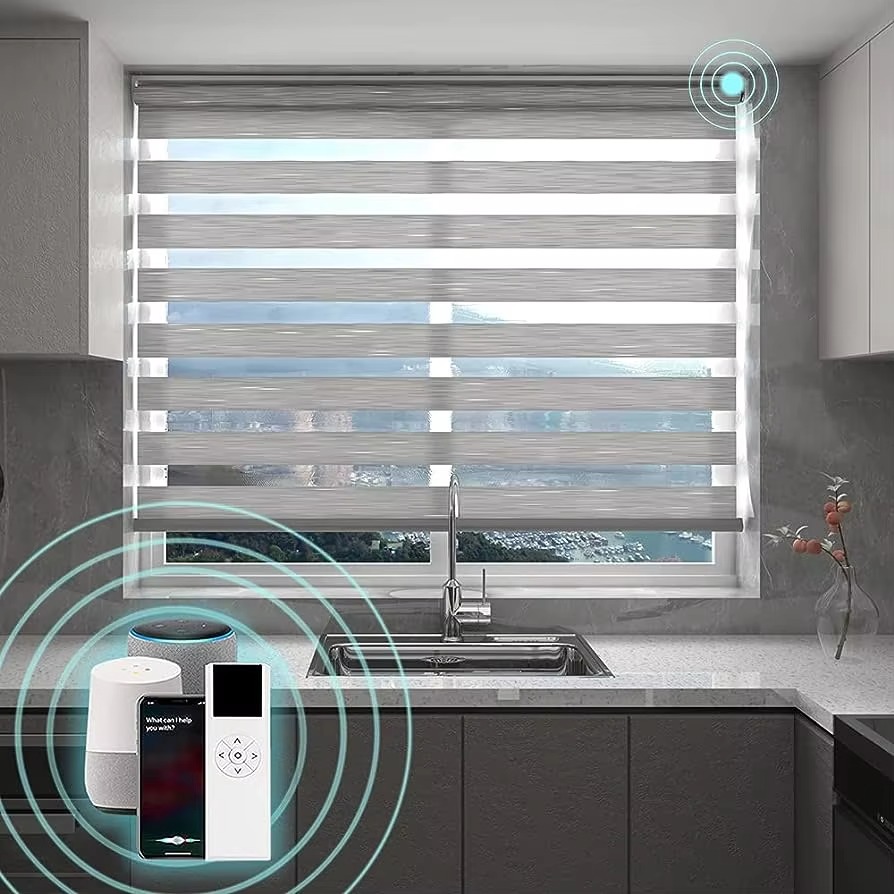 Smart Home Alexa Roller Blackout Double Layers Day and Night Curtain Roller Shades Wifi Control Motorized Electric Zebra Blinds